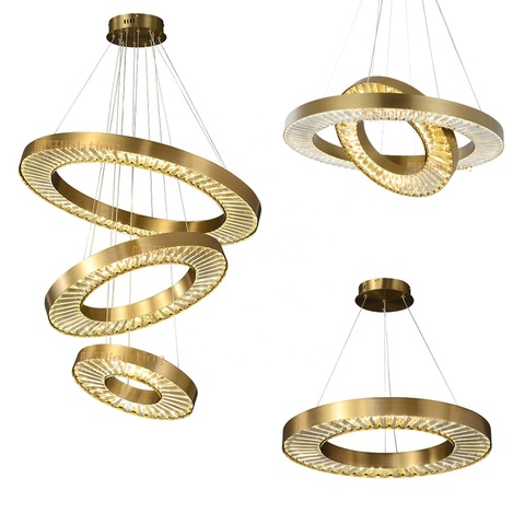 Высокий потолок, Металлические Светильники для интерьера, дизайнерские светильники, подвесные светильники, современное освещение, трехслойное кольцо, Хрустальная светодиодная Подвесная лампа